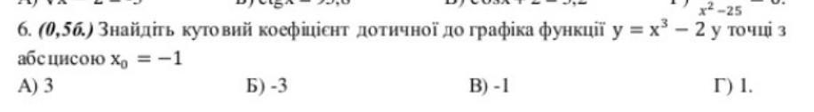 знайдіть кутовий коефіцієнт дотичної до графіка функції y = x^3-2 у точці з абсцисою x0 = - 1