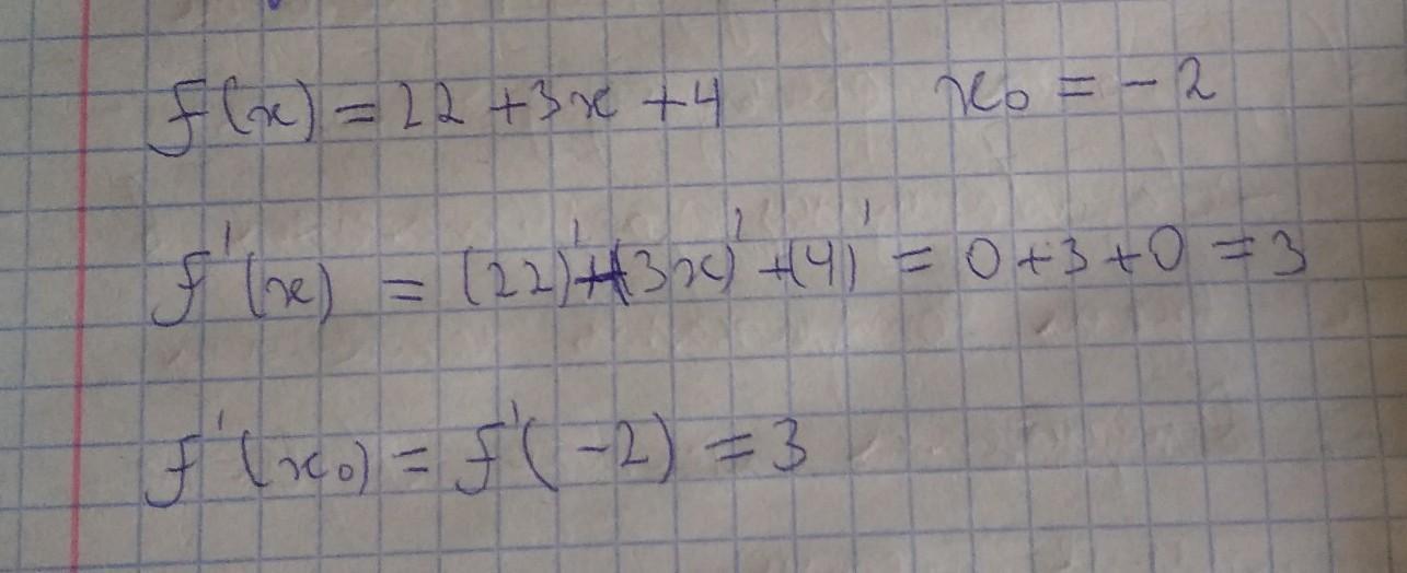 Помогите решить :( Найдите производную функции ()=22+3х+4 в точке х0=−2.