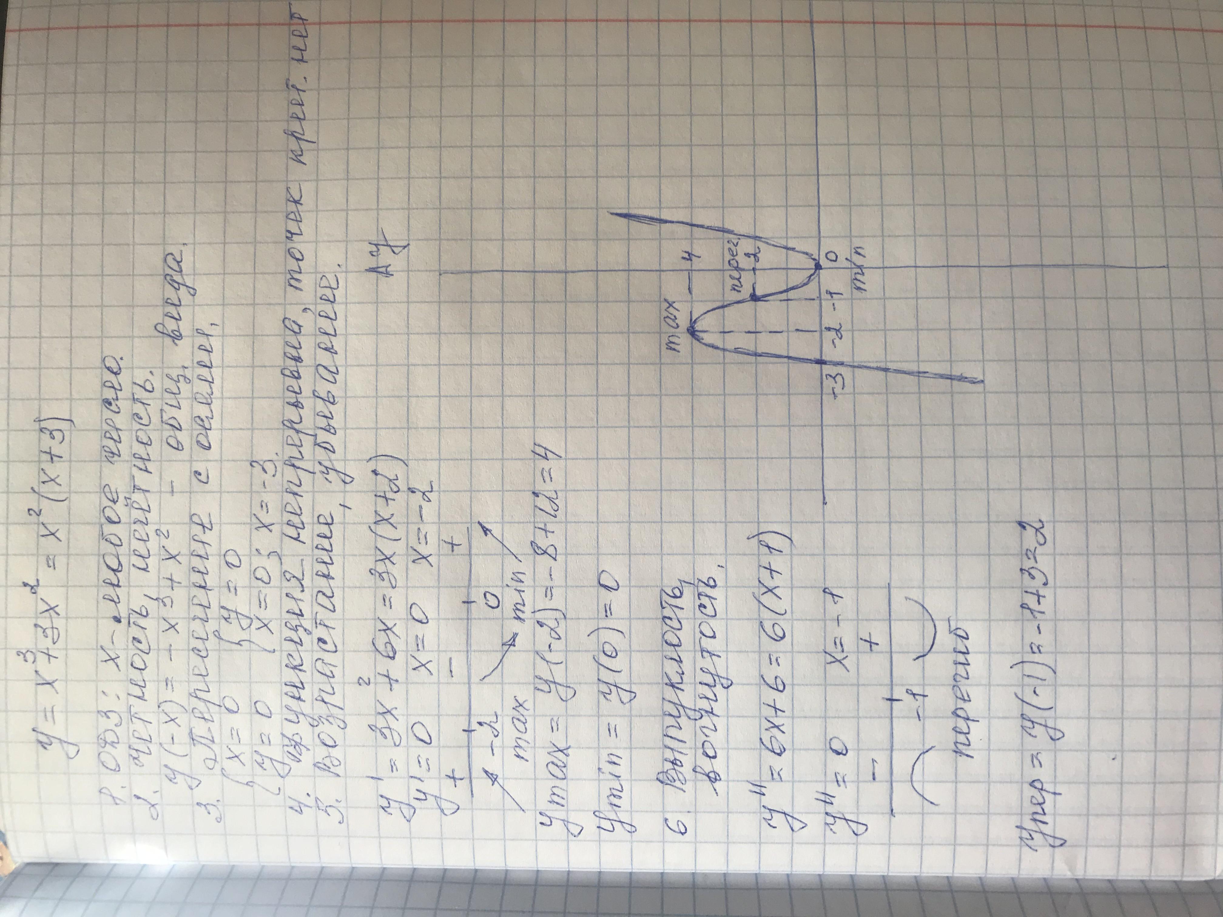 Исследуйте функцию и постройте ее график у=х^3+3х^2 (желательно на листочке)