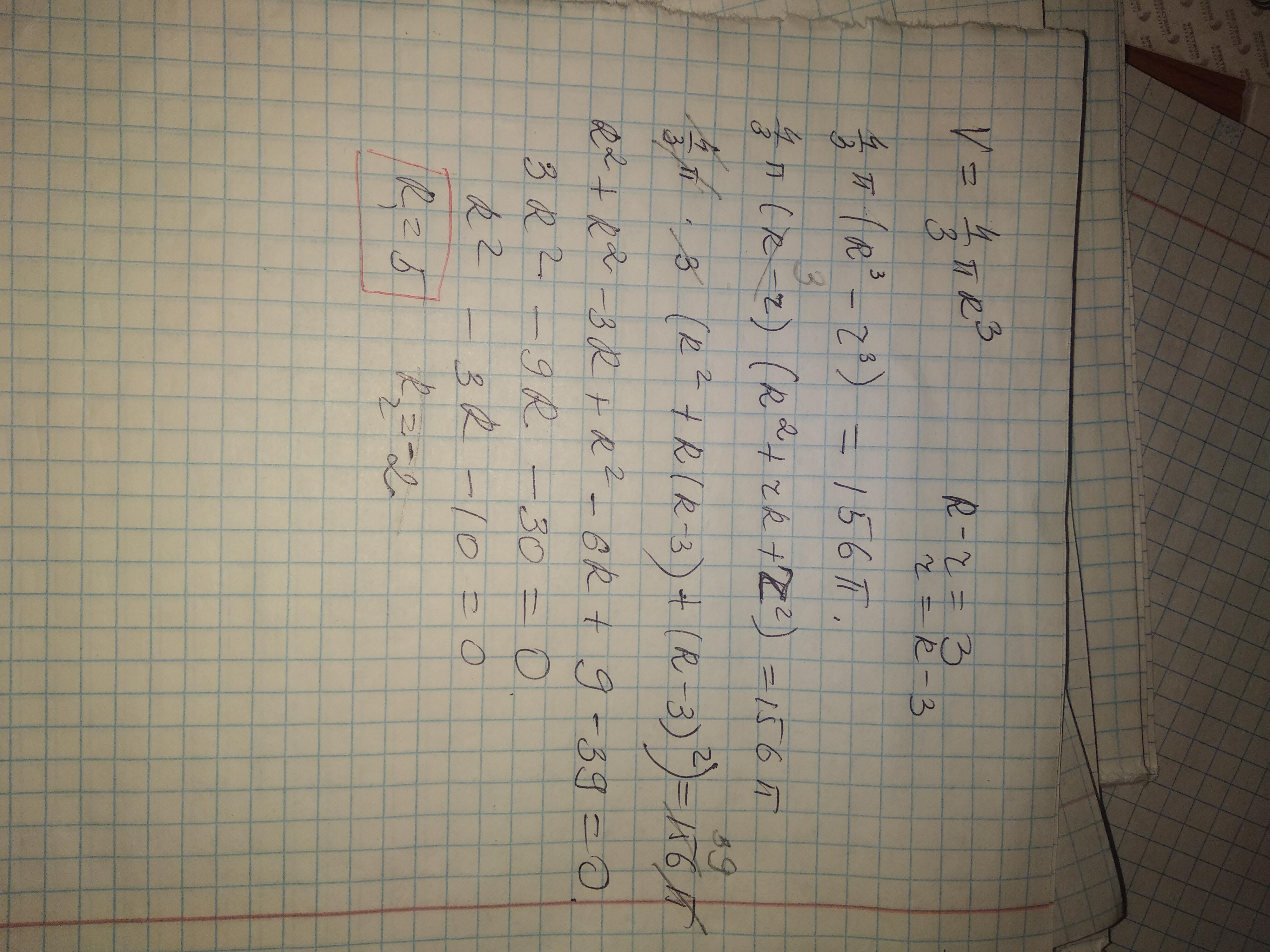 скажите пожалуйста почему чтобы найти объем полого шара вы от объема внешнего шара отнимаем объем внутреннего? разве мы так не находим объем стенки шара, у вас правильно вышло, но вот