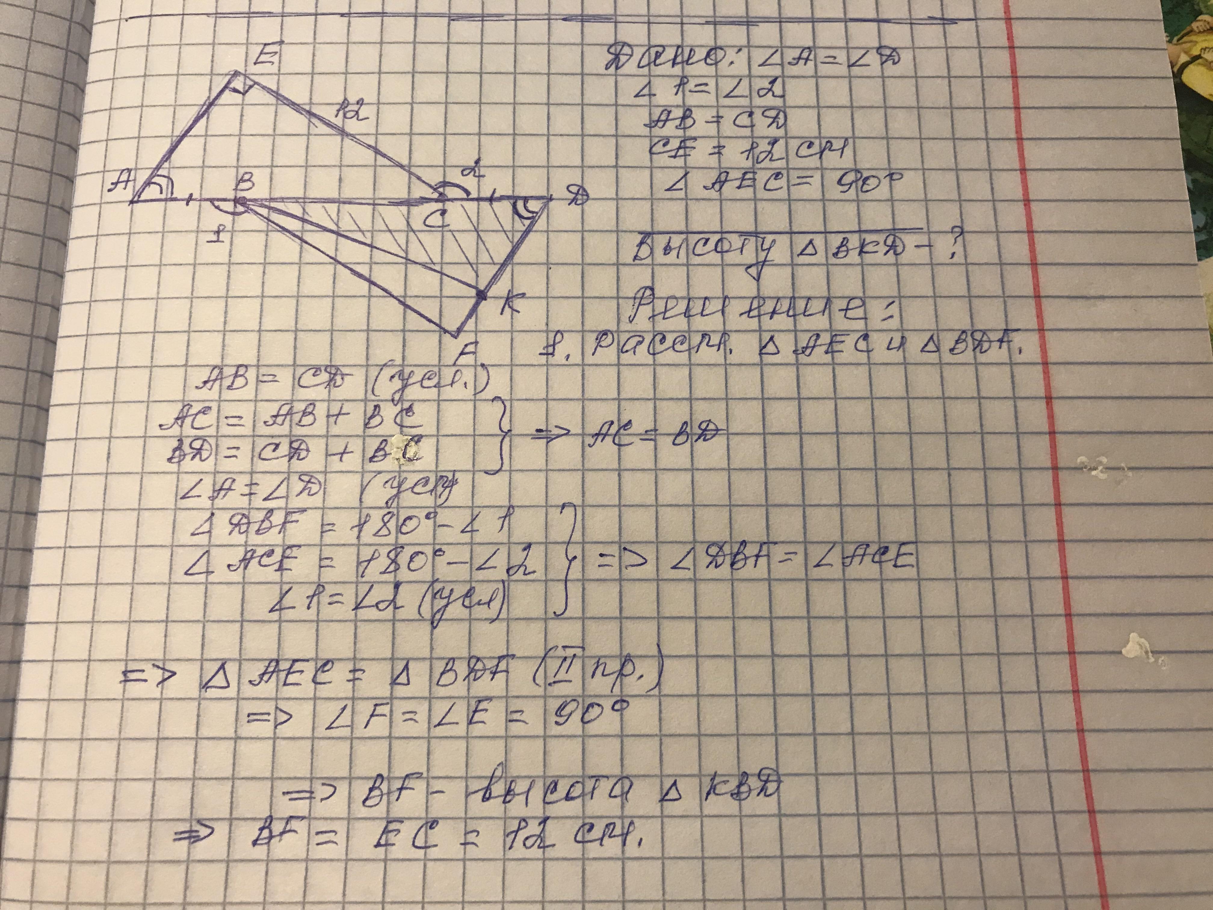 ВF=EC , так как треугольники АЕС и ВFD равные. ВF высота ∆ВКD.