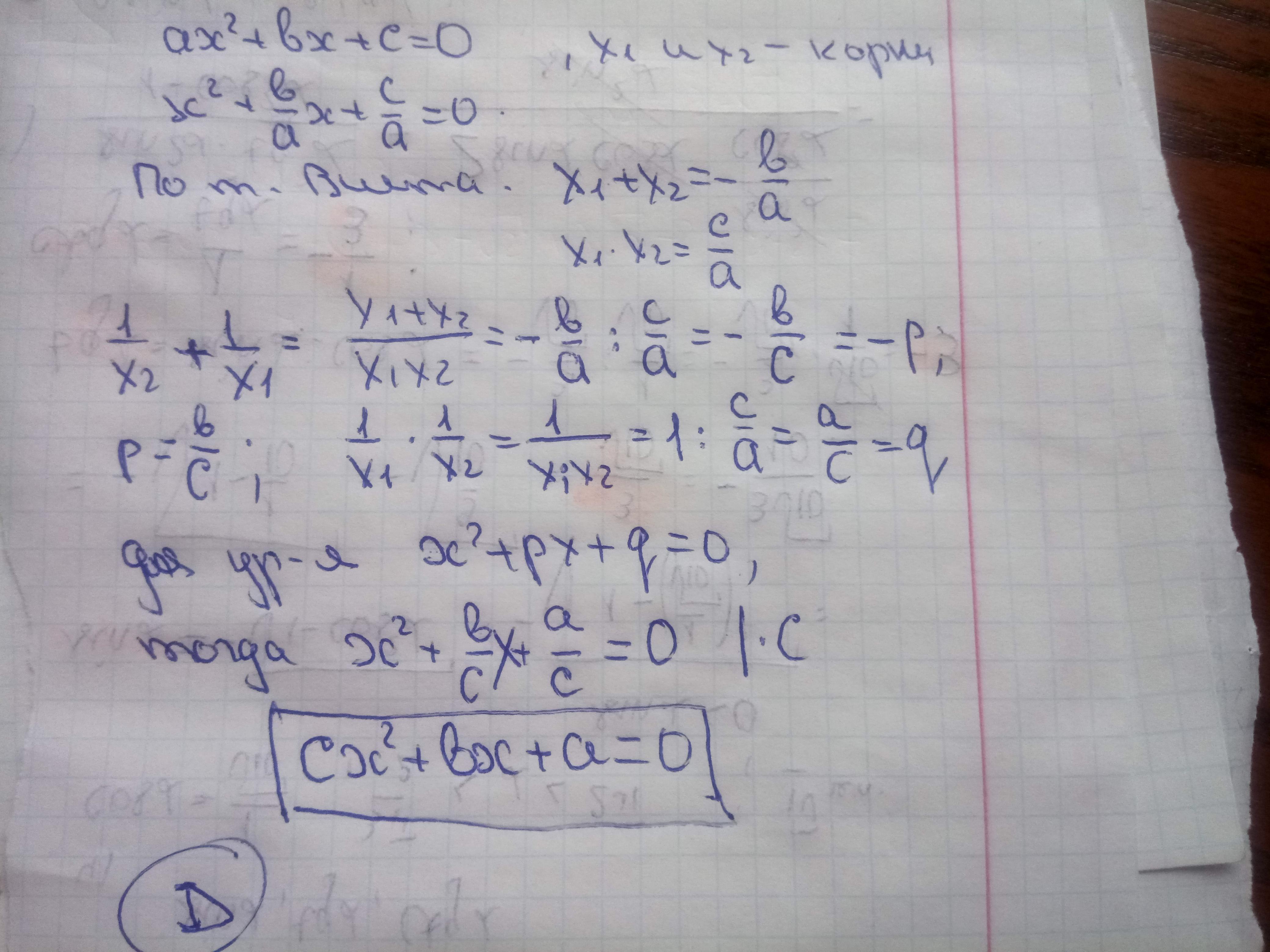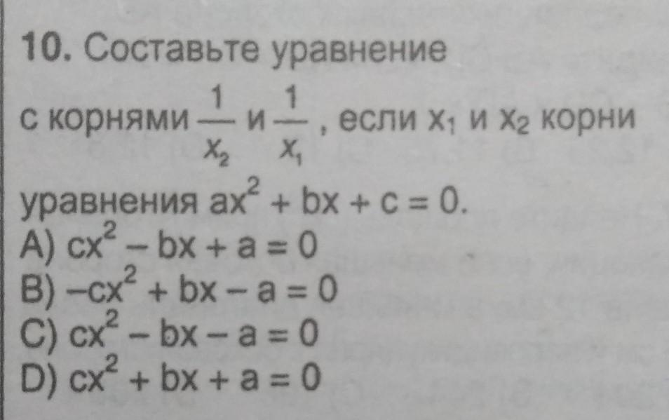 Для квадратного уравнения ax²+bx+c=0, a≠0