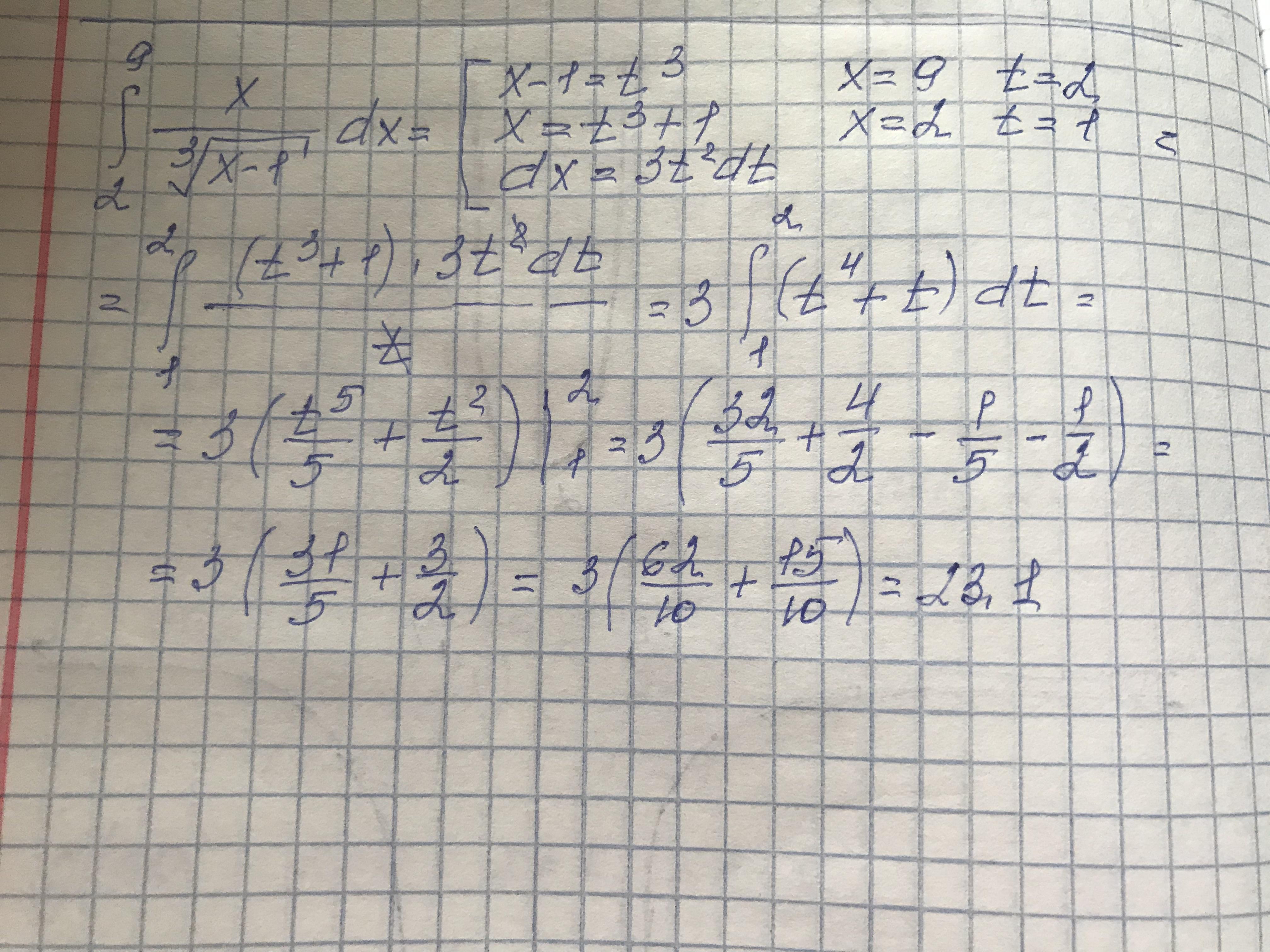. Вычислить определенный интеграл: 9 сверху 2 снизу Интеграл (x)/3степеникорень из(x-1) dx