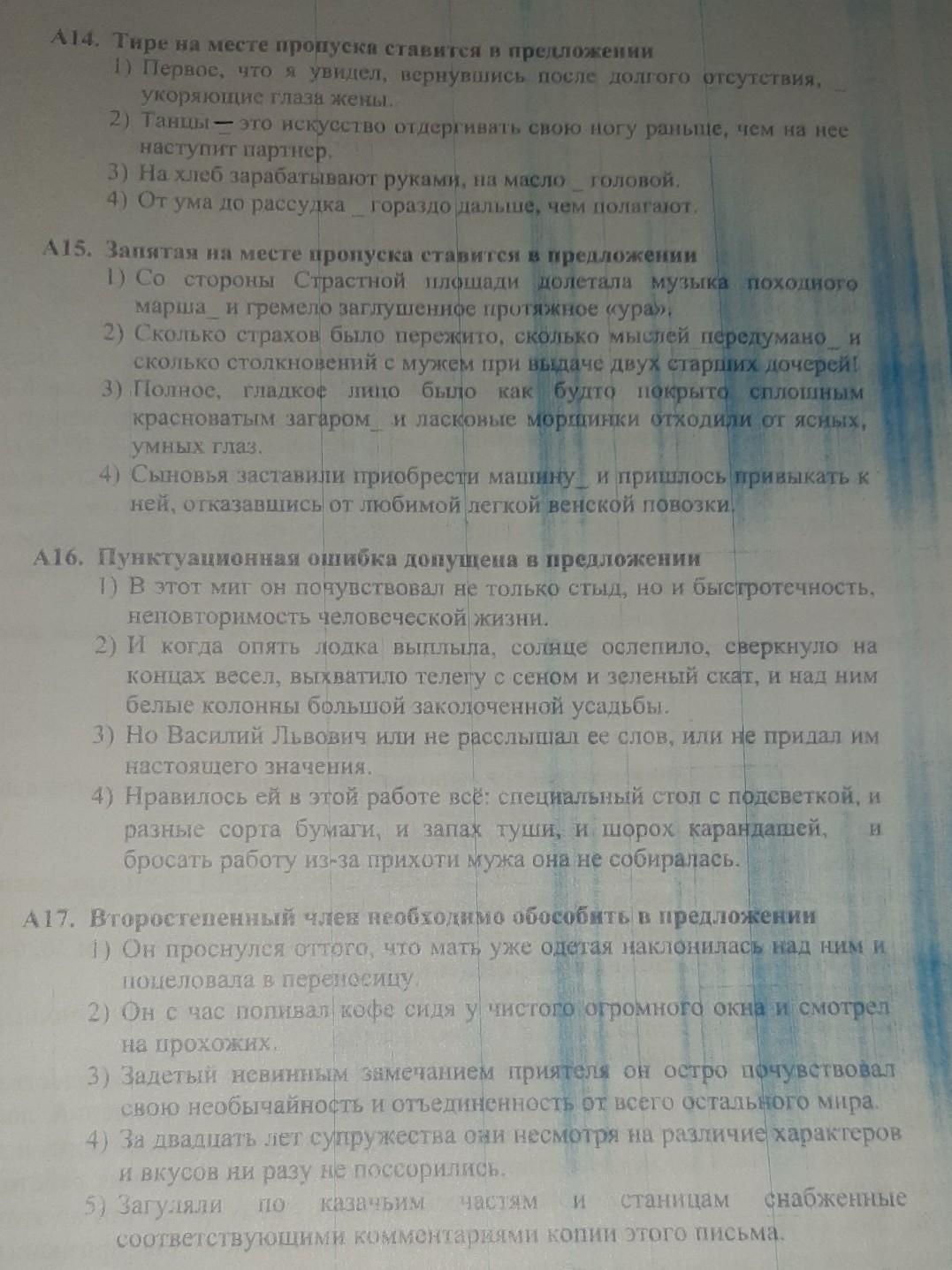 Тест по русскому. Пунктуационная ошибка допущена в предложении; ...