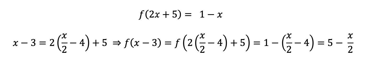 Если при всех значениях x имеет место равенство f(5+2x)=-x+1, то чему равно f(x-3)