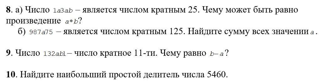 а) Признак делимости на 25 - число заканчивает на 00, 25, 50 или 75.