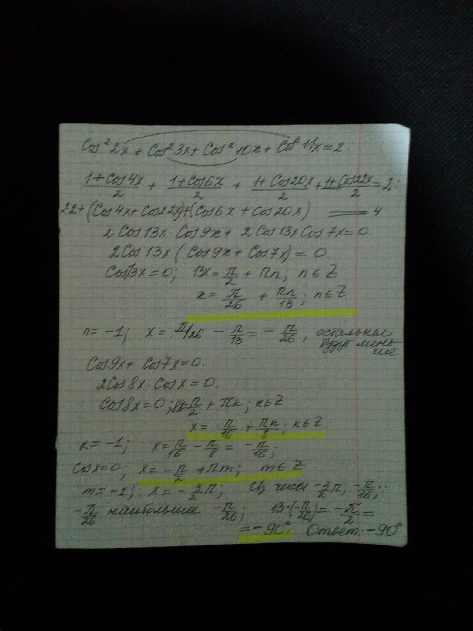Помогите срочно ! Решите уравнение. В ответе запишите наибольший отрицательный корень уравнения (в градусах) УМНОЖЕННЫЙ НА 13!!!!