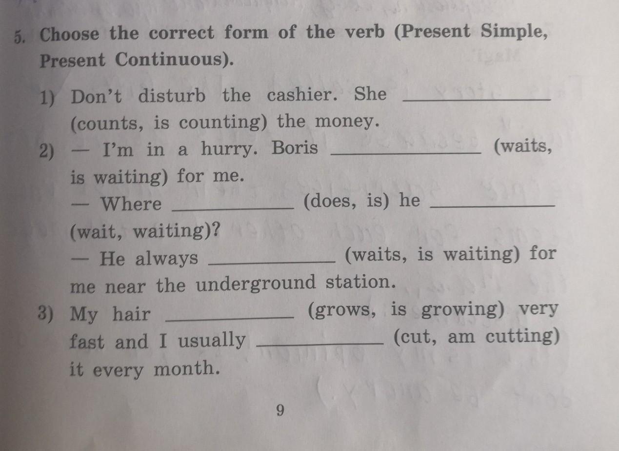 2. is waiting; is he waiting; waits