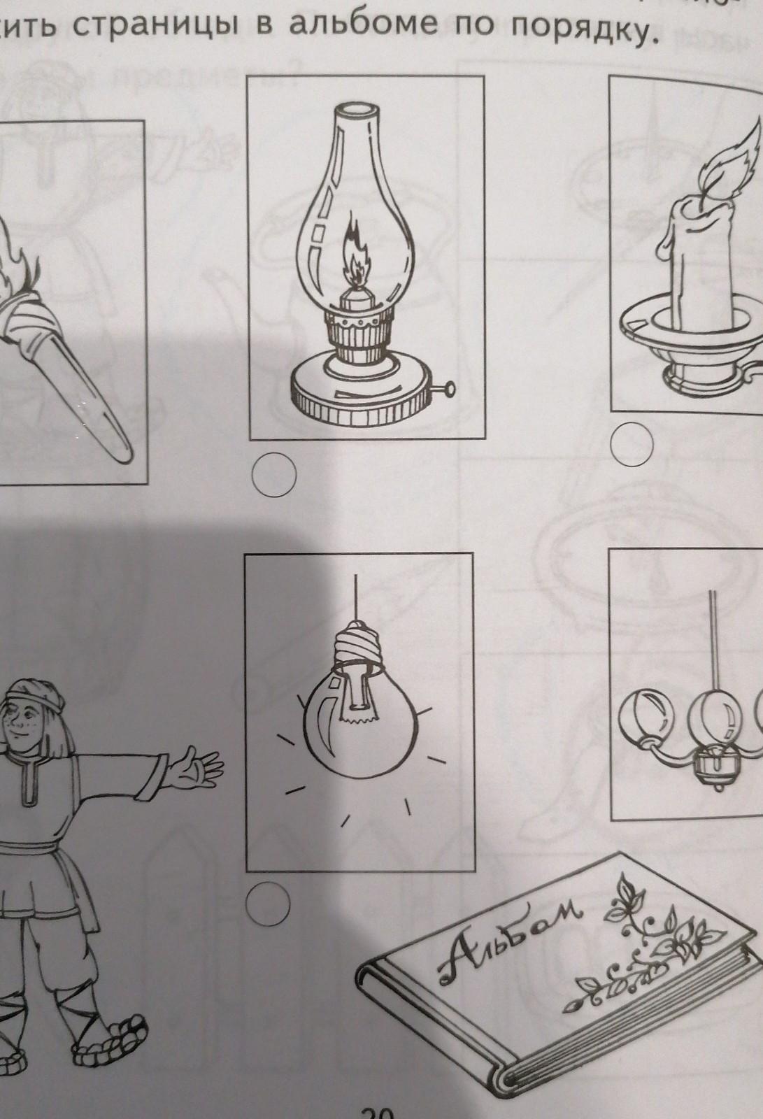 Данила-мастер решил оформить альбом «История лампочки», Помоги ему разложить страницы в альбоме по порядку
