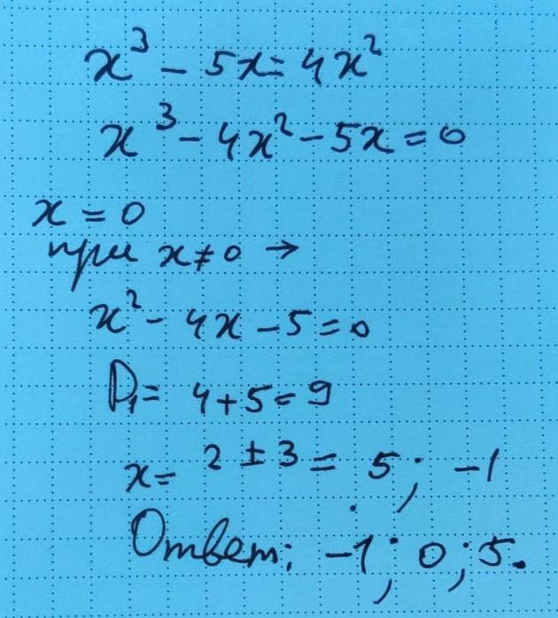 Решить уравнения иксв кубе минус 5x=4xв квадрате