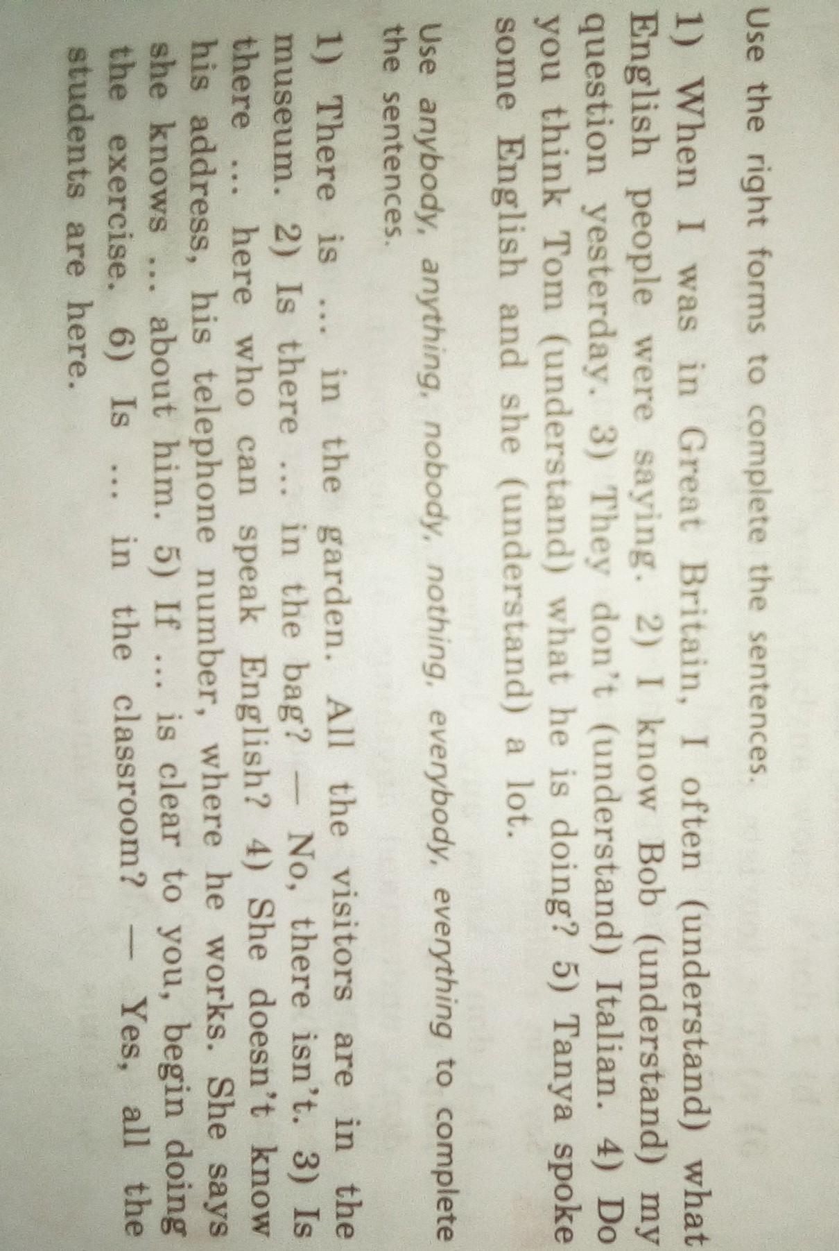 1 nobody 6 everybody 3 anybody 4 anything 5