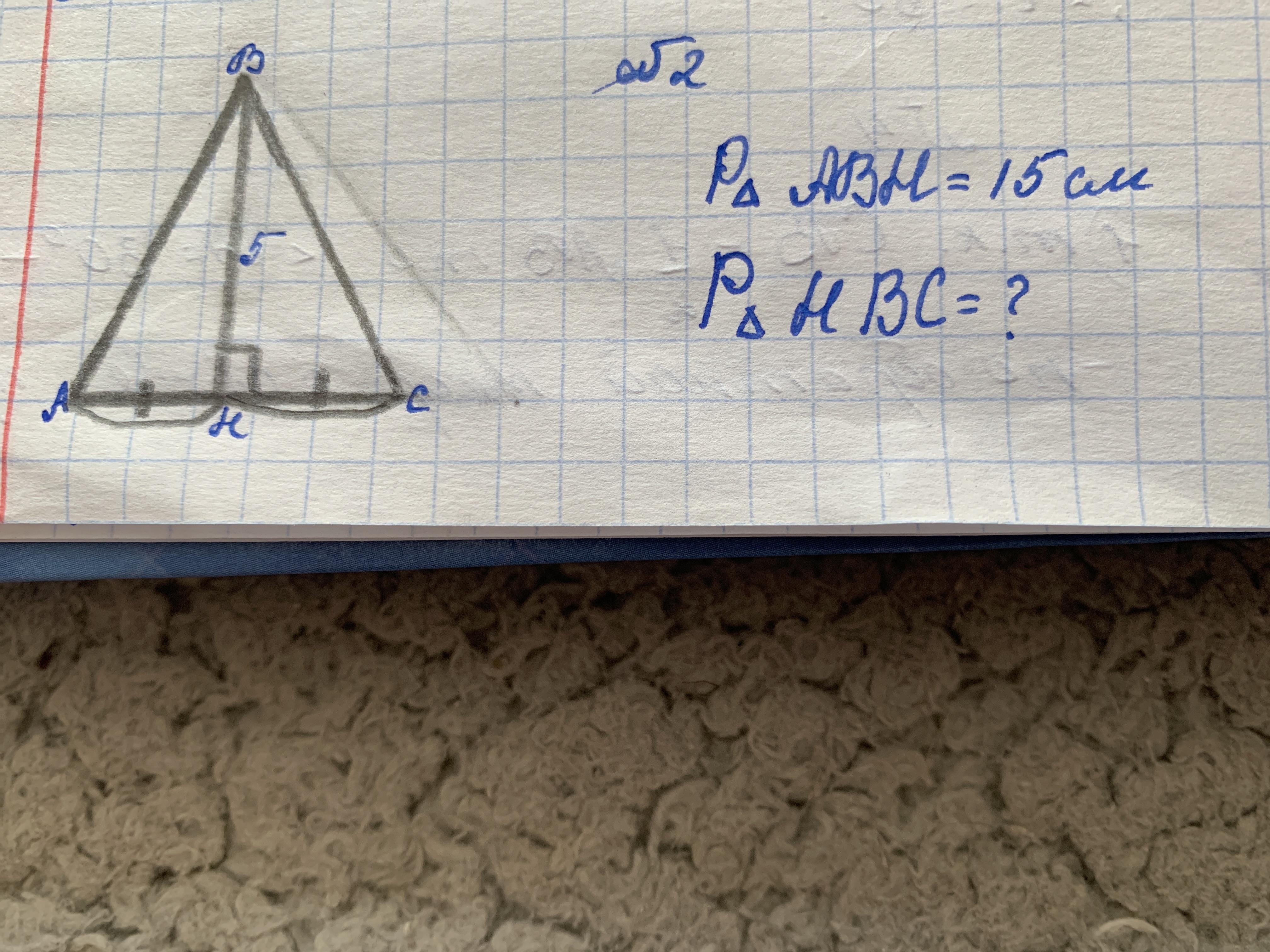 ▵АВН = ▵СВН (по двум сторонам и углу между ними) => Р▵СВН = Р▵АВН = 15