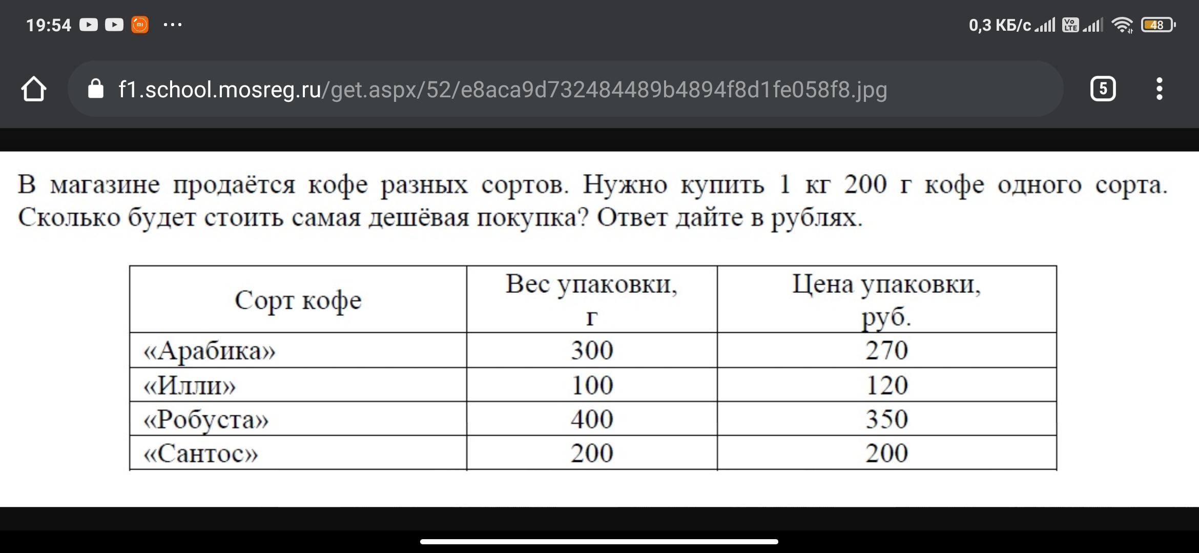 Арабика, т.к нам нужна 1.200 грамм, мы должны узнать сколько упаковок нам нужно купить
