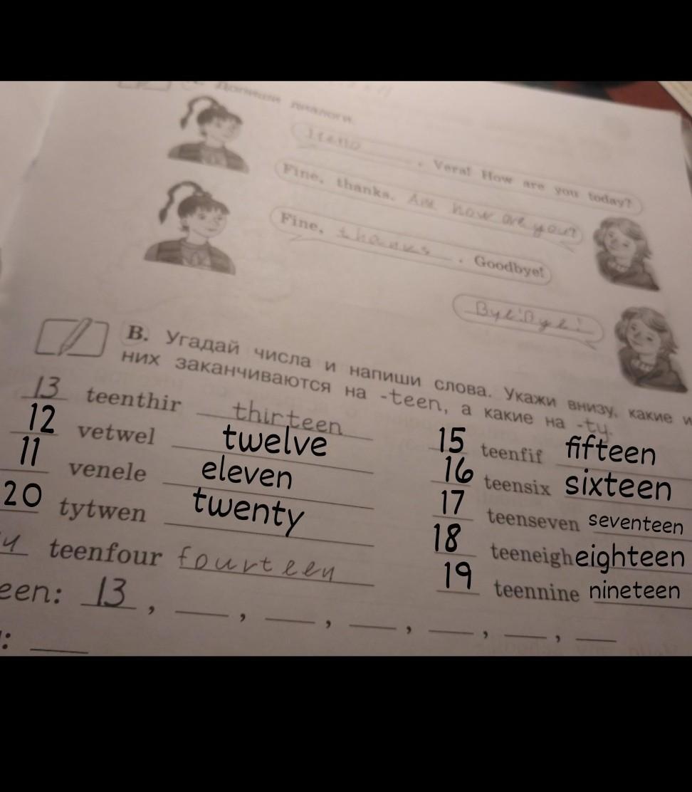 Угадай числа и напиши слова. Укажи внизу, какие из них заканчиваются на -tееn а какие на -ty. Помогите пожалуйста