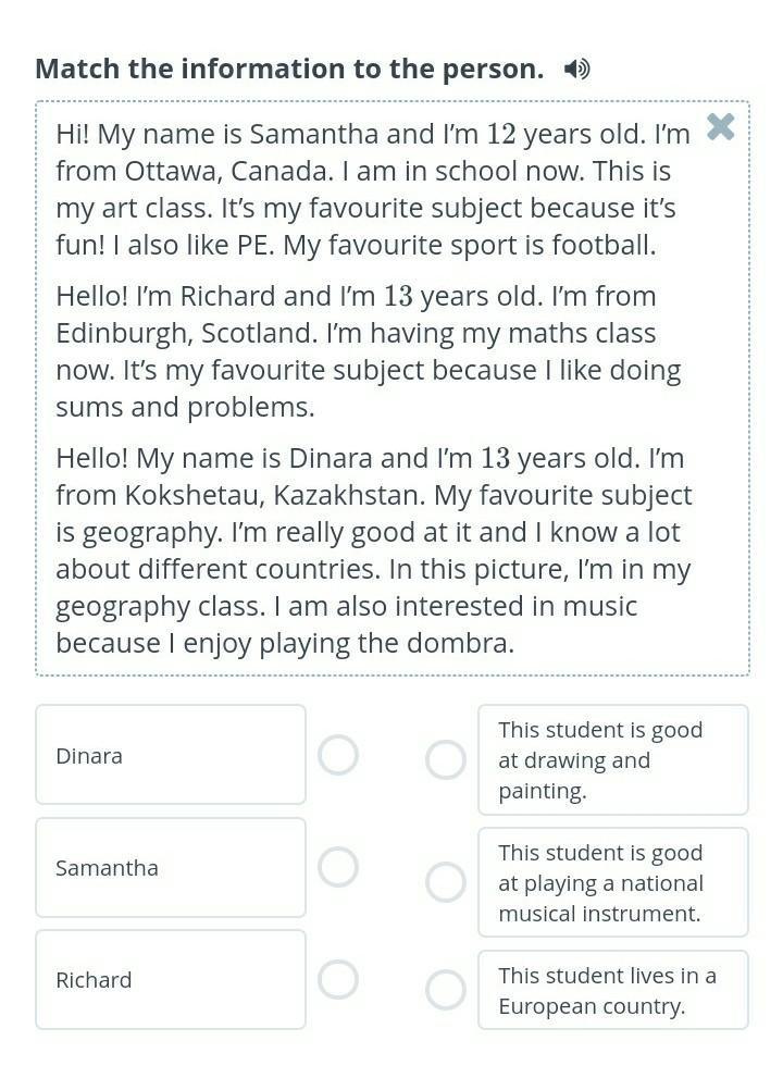 Dinara - 2, Samantha- 1, Richard- 3