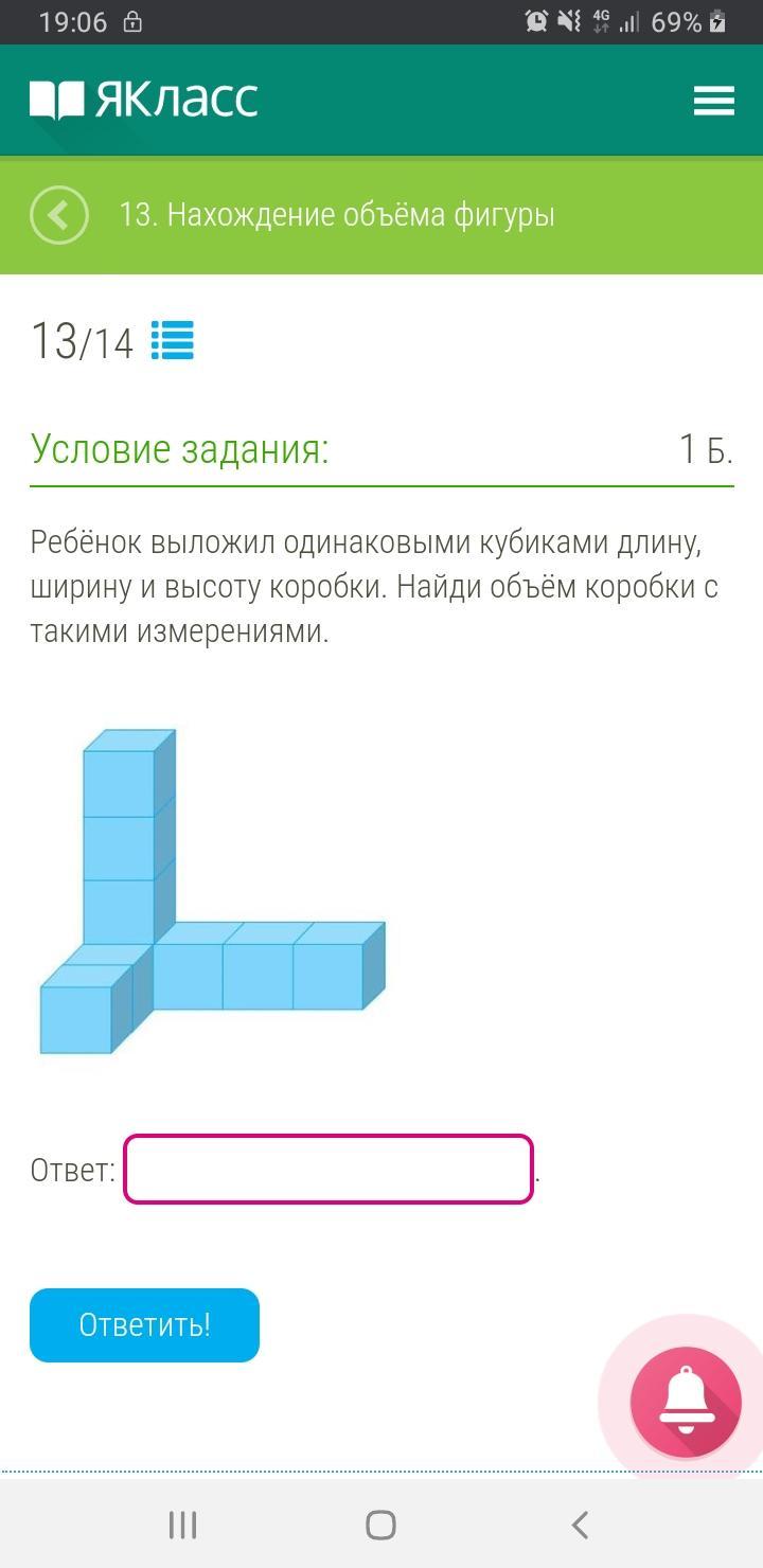 Ребёнок выложил одинаковыми кубиками длину, ширину и высоту коробки. Найди объём коробки с такими измерениями.