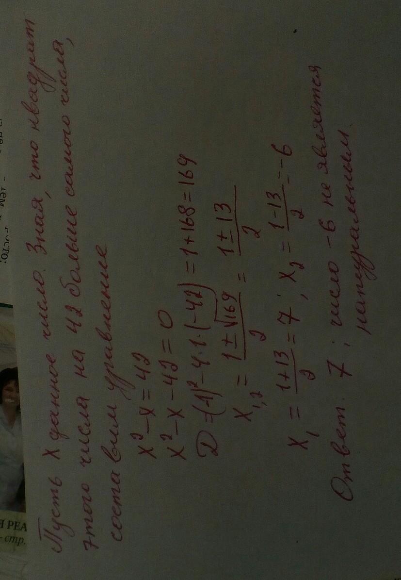 Найти натуральное число, квадрат которого на 42 больше данного числа.
