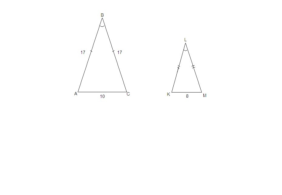 у двух равнобедренных треугольников равны углы при вершинах. Основание одного из треугольников равно 8 см. Найдите боковую сторону этого треугольника, если боковая сторона и основание другого треугольника равны 17 см и 10 см соответственно