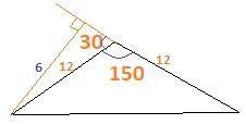 Смежный с углом в 150* равен 30*. Катет, лежащий против угла в 30* равен 1/2 гипотенузы (12 см). Значит высота равна 1/2*12=6 (см).