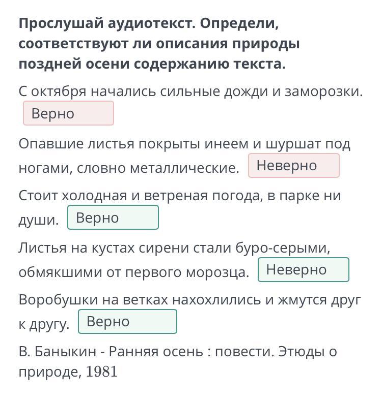 Прослушай аудиотекст. Определи, соответствуют ли описания природы поздней осени содержанию текста.