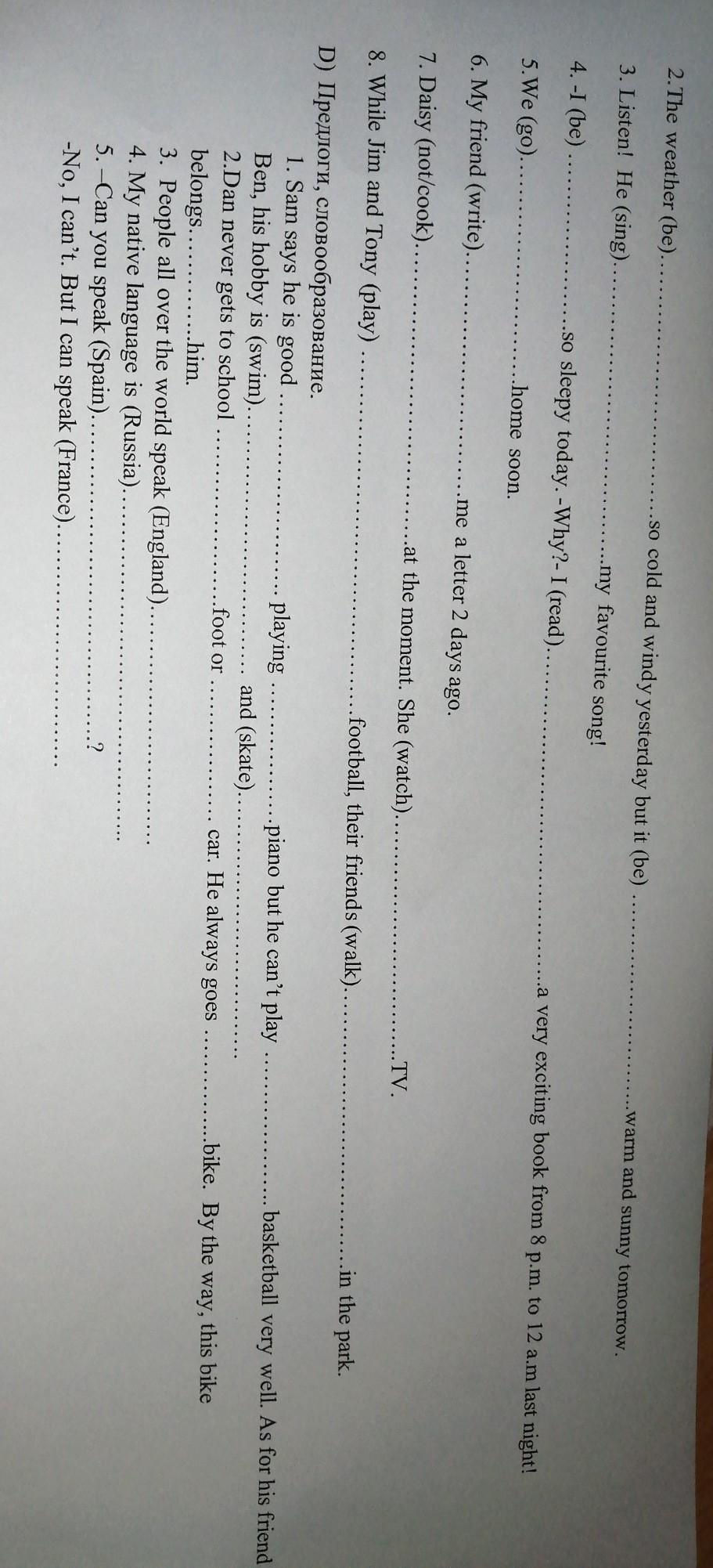 4. I was so sleepy today . -Why?- I read a very exciting book from 8 p.m. to 12 a.m last night.