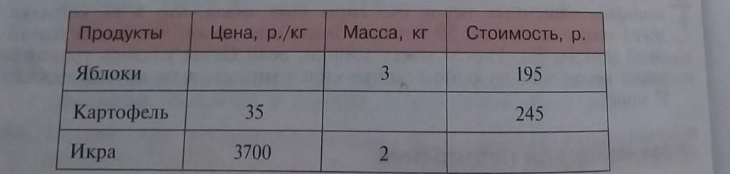 Заполни пустые клетки в таблице