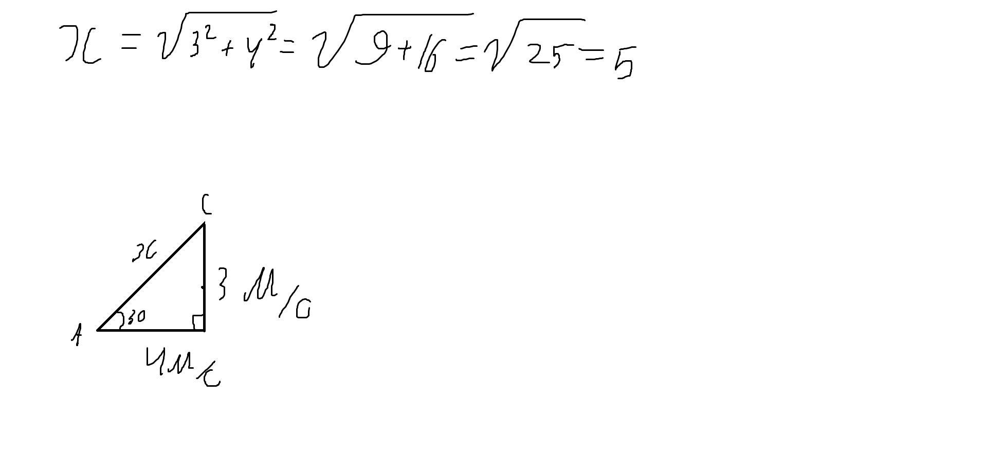 Лодка, обладающая скоростью 3 м/с, плывет под углом 30 градусов по отношению к берегу, скорость реки равна 4 м/с. Определить скорость лодки относительно берега.