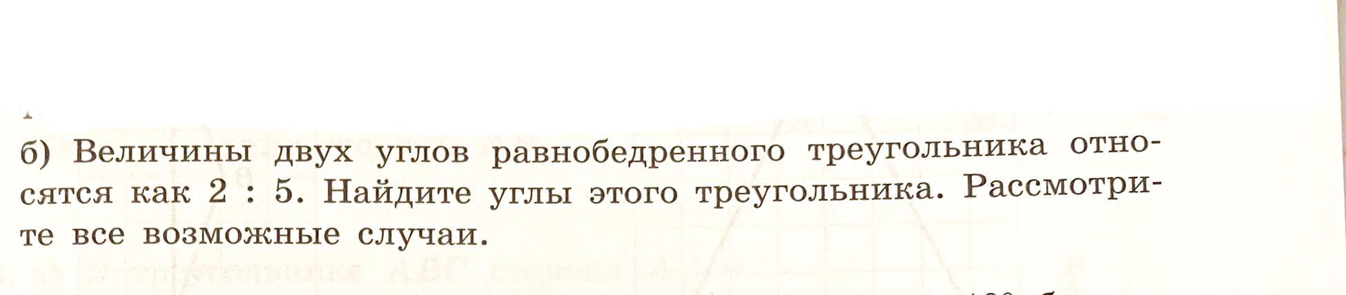 пусть угол при вершине равен 2x, тогда углы при основании равны 5x