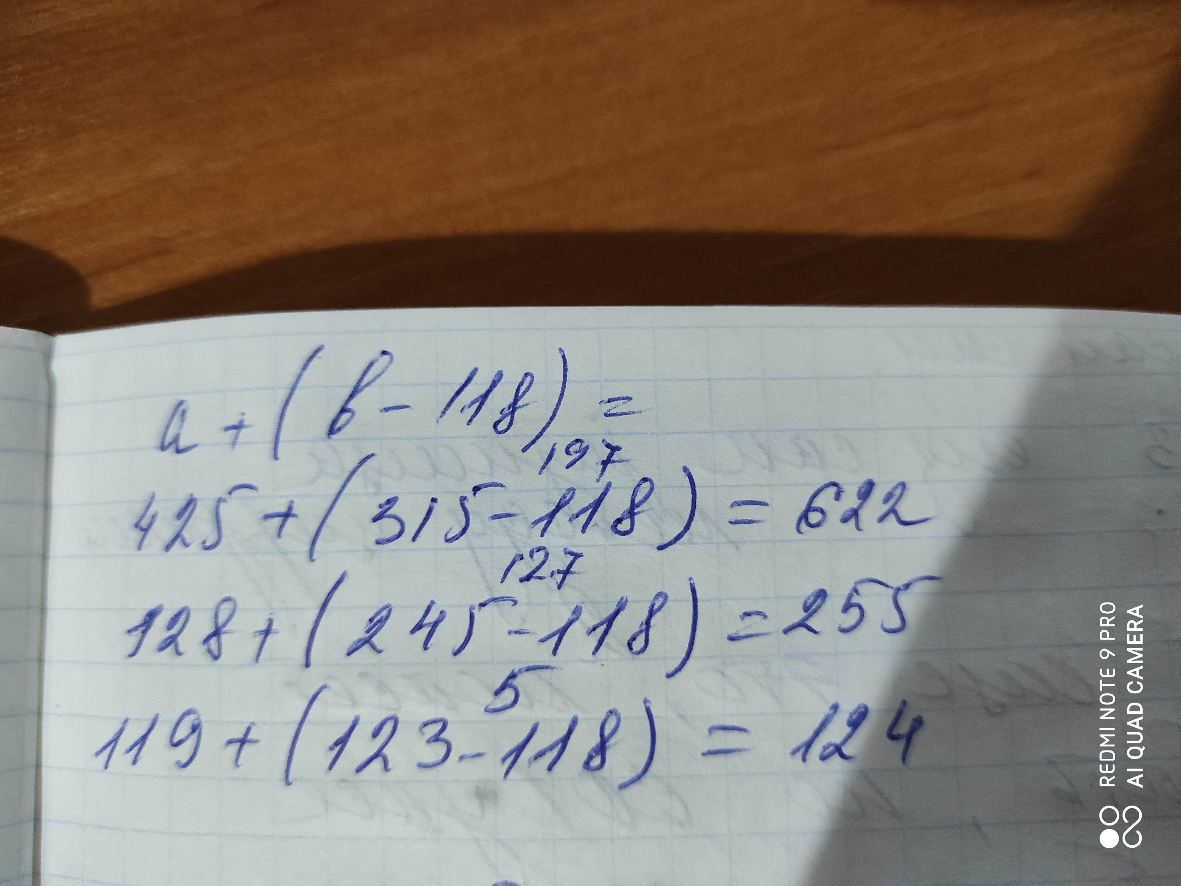 СОСТАВЬ БУКВЕННОЕ ВЫРАЖЕНИЕ ПО СХЕМЕ □+(□-118) НАЙДИ ЗНАЧЕНИЕ ВЫРАЖЕНИЙ ПРИ ЗАДАННЫХ ЗНАЧЕНИЯХ БУКВ a=425 128 119 b=315 245 123
