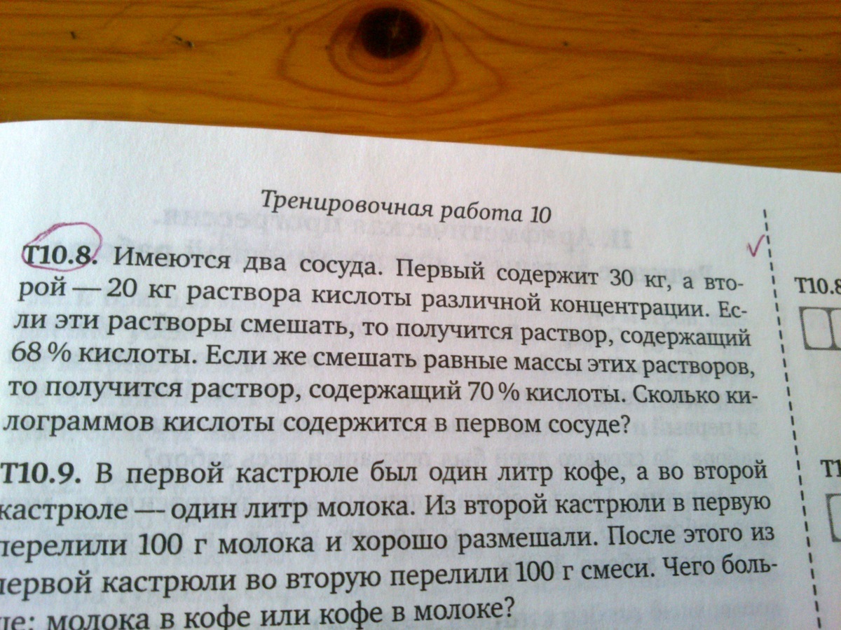 Если это всё смешать, получится 0,3x + 0,2y кислоты на 50 кг раствора, и это 68%-раствор, то есть