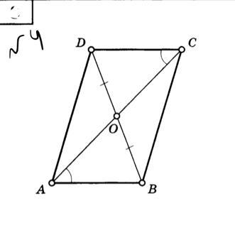Значит треугольник AOB = треугольнику COD по стороне и прилежащим углам. Значит AO =OC