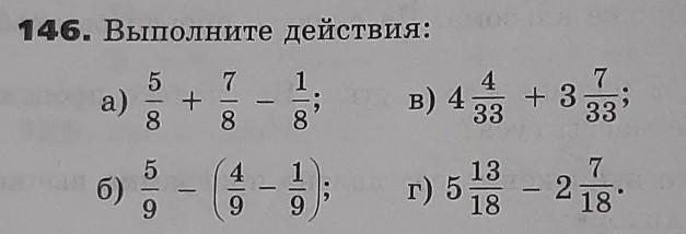а) Так как у дробей одинаковые знаменатели(8), то мы складываем и вычитаем числители: =