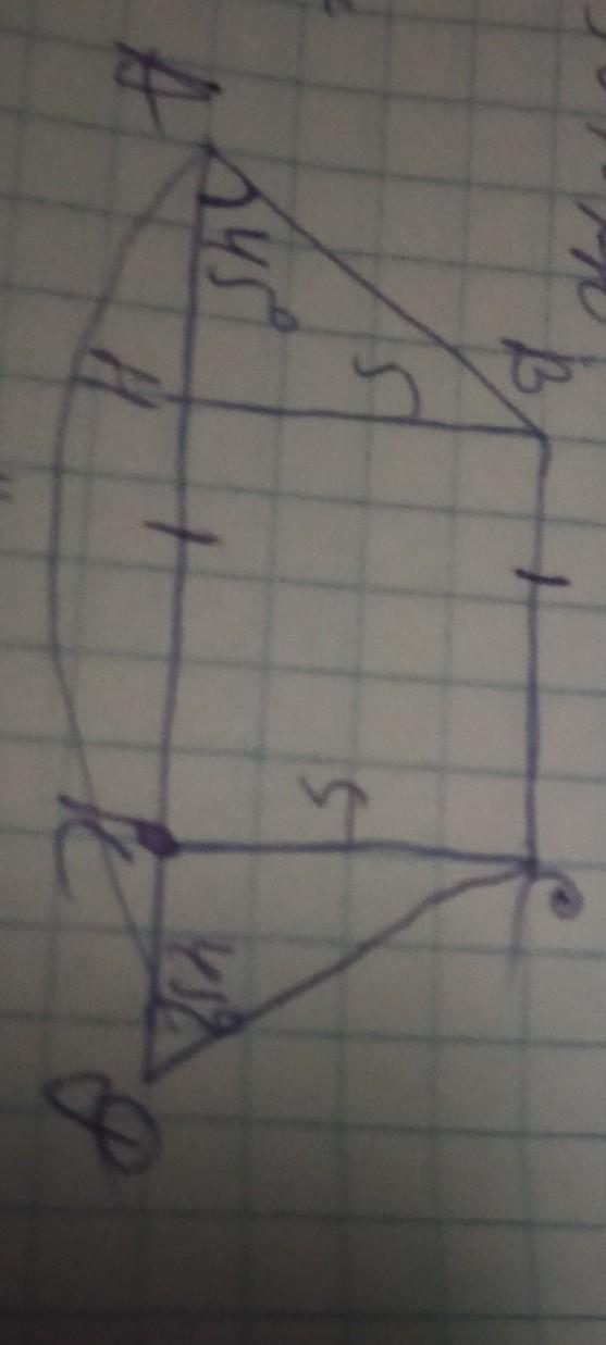 Рассмотрим ∆АВН, он прямоугольный где АН и ВН катеты а АВ - гипотенуза. <А=45°, а сумма острых углов прямоугольного треугольника составляет 90°, поэтому <АВН=90–45=45°. Итак: ∆АВН - равнобедренный, поэтому АН=ВН=5. Тогда АН=КД=5. Если АД=14, то ВС= НК=АД–АН–КД=14–5–5=14–10=4