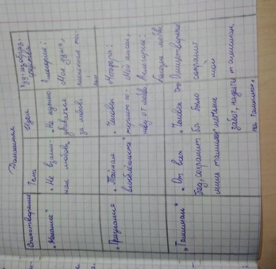 1. Проанализируйте стихотворения о любви А.С.Пушкина и заполните таблицу