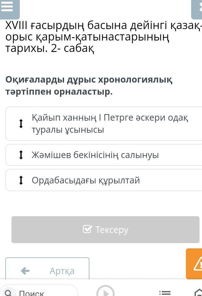 оқиғаларды хронологиялық ретпен орналастыр