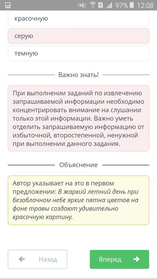 Прослушай текст «Аромат и окраска цветов» и укажи, какую картину создают цветы на фоне травы.