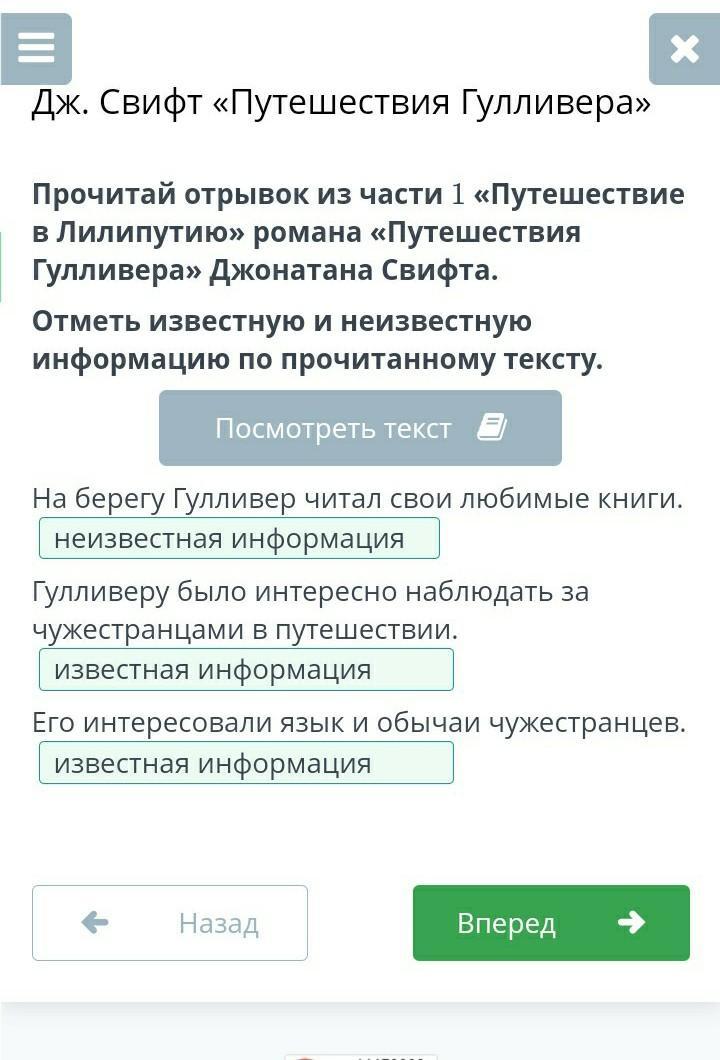Отметь известную и неизвестную информацию по прочитанному тексту.