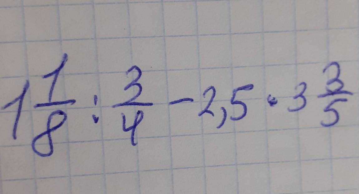 найдите значение вырожение 1 1/8÷3/4-2,5×3 3/5=