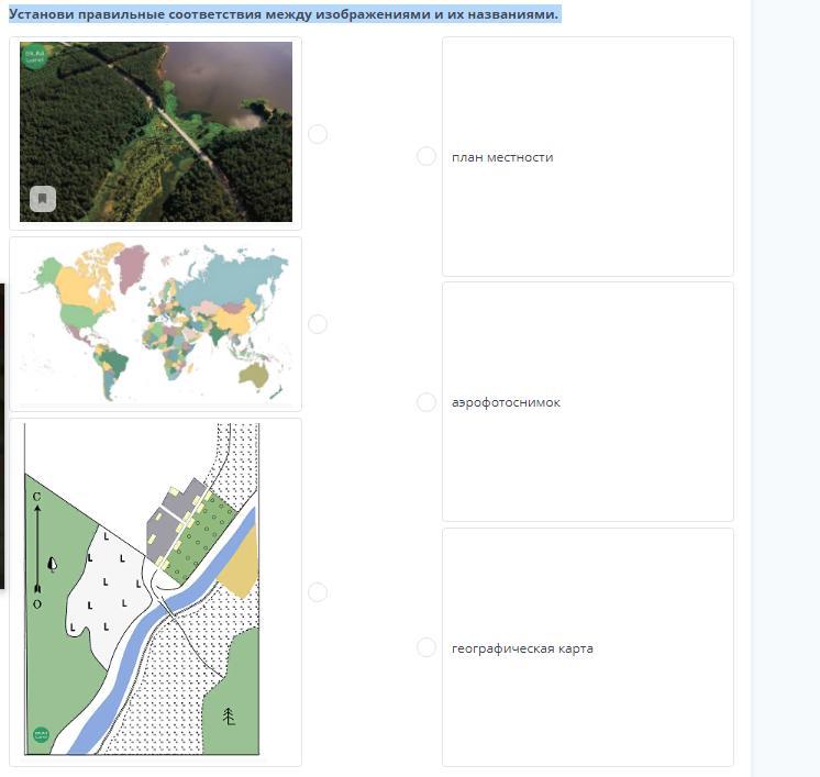 1 это фотоснимок.2 это географическая карта.3 это план местности