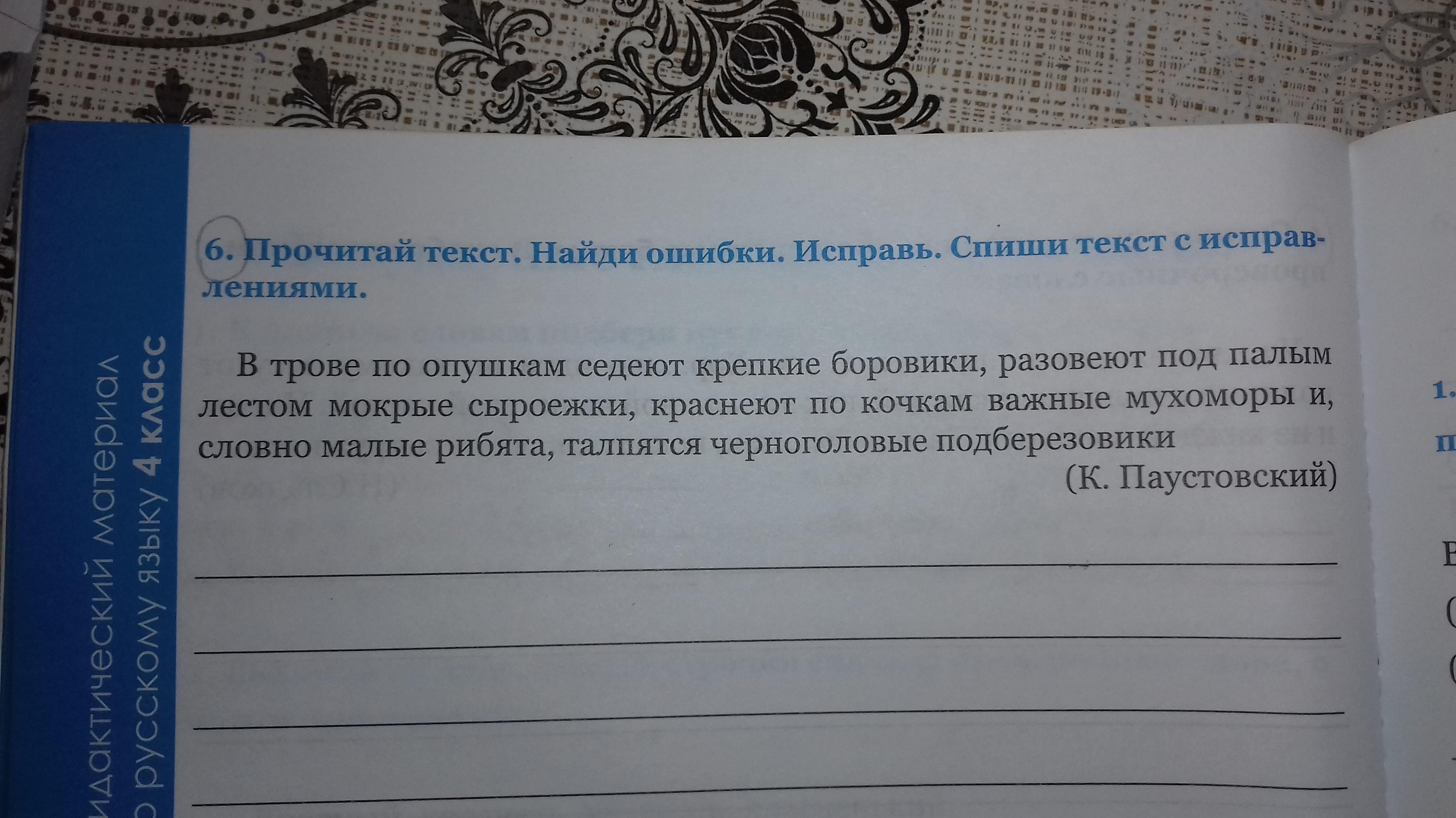 В траве по опушкам седеют крепкие боровики, розовеют под палым листом мокрые сыроежки, краснеют по кочкам важные мухоморы и, словно малые ребята, толпятся черноголовые подберезовики.