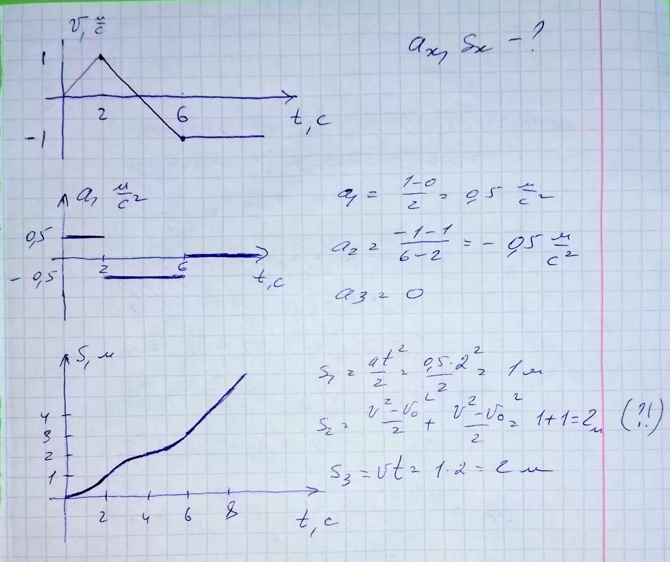По графику зависимости скорости движения тела от времени построить графики зависимости ах(t), Sx(t)