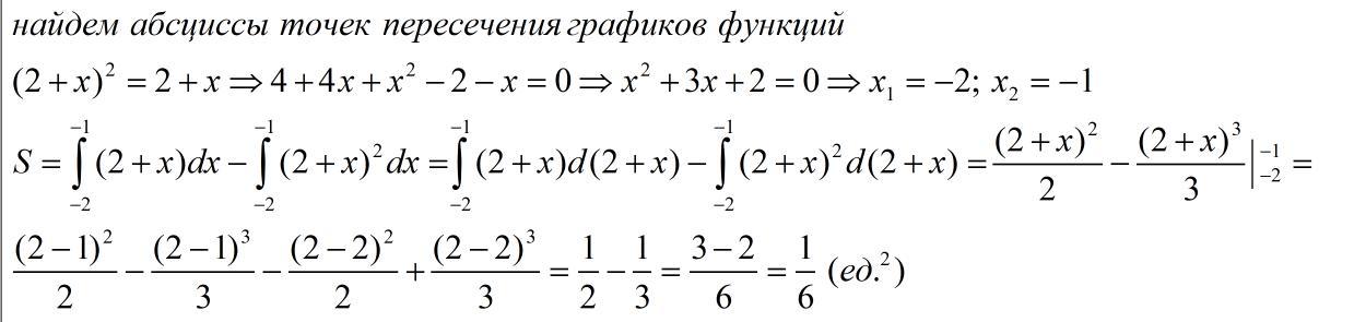 1. Найти площадь фигуры, ограниченной линиями у=(2+х)^2, у=2+х.
