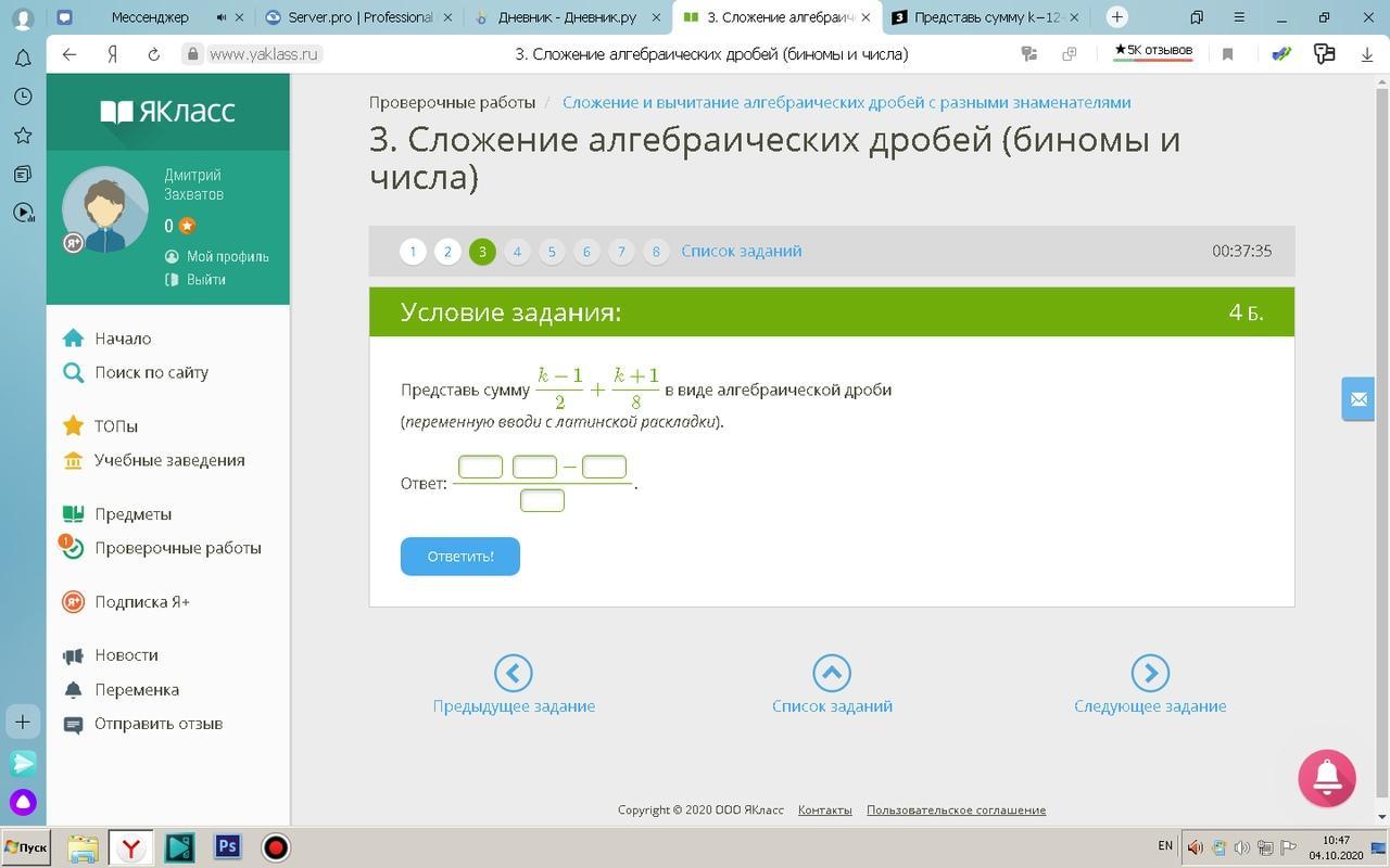 4. 4(числитель) и 8(знаминатель) сокращаем и получается 4k-(k+1)/2
