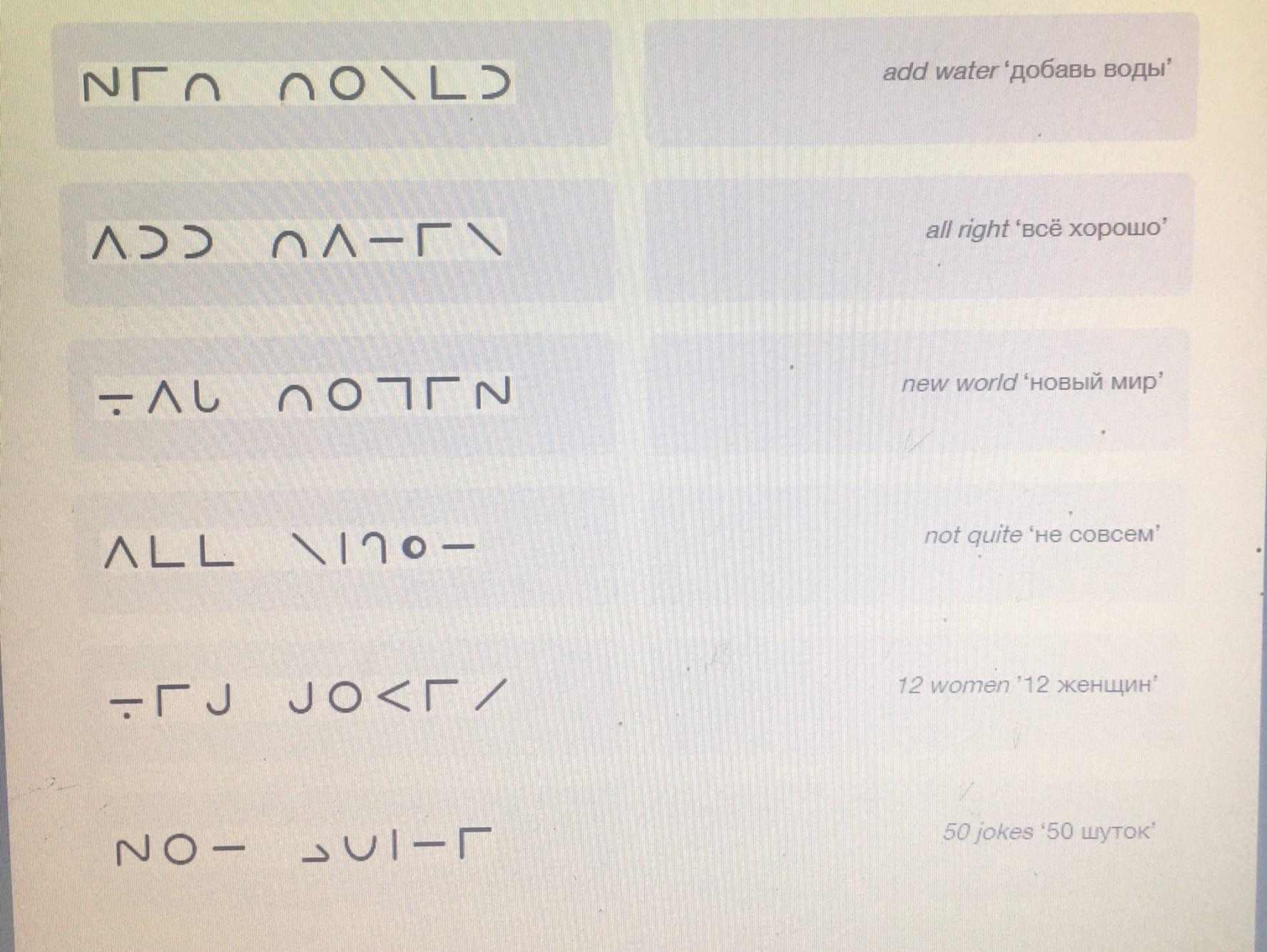 Даны английские словосочетания, записанные письмом для слабовидящих, разработанным в середине XIX века, и обычным письмом в изменённом порядке.