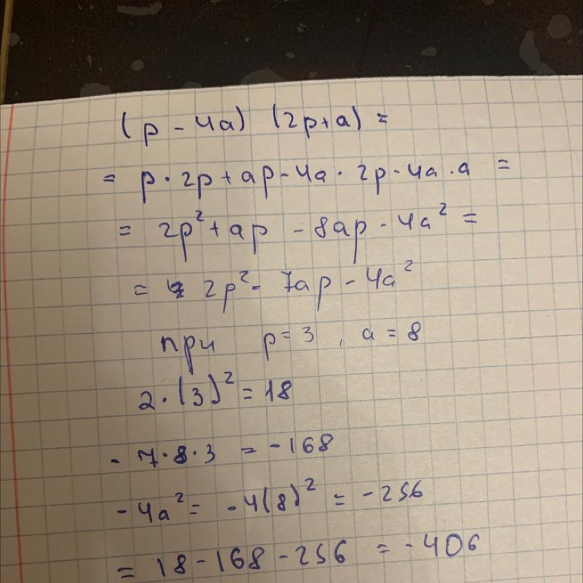 (3-4*8)(2*3+8)=(3-32)(6+8)=-29*14=-445