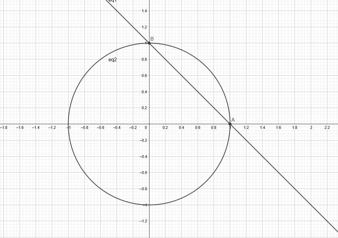 График второго уравнения - окружность с центром в точке (0 0) и радиусом 1.
