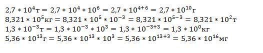 1)2,7*(10*10*10*10)=27000т=27000000000г (2,7е10)