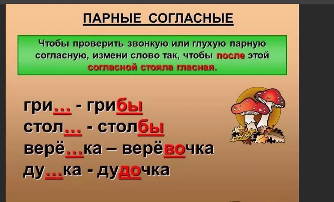 Нужно найти парные согласные в корне слова