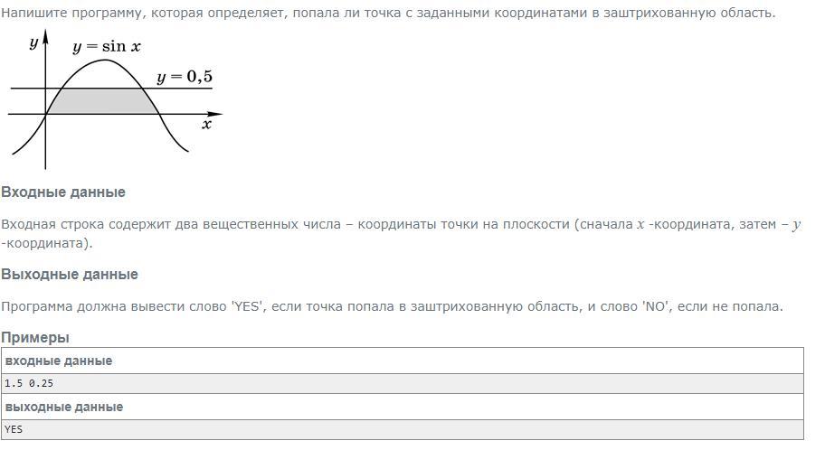 if (x >= 0) or (x <= pi) and (y <= sin (x)) and (y <= 0.5) then