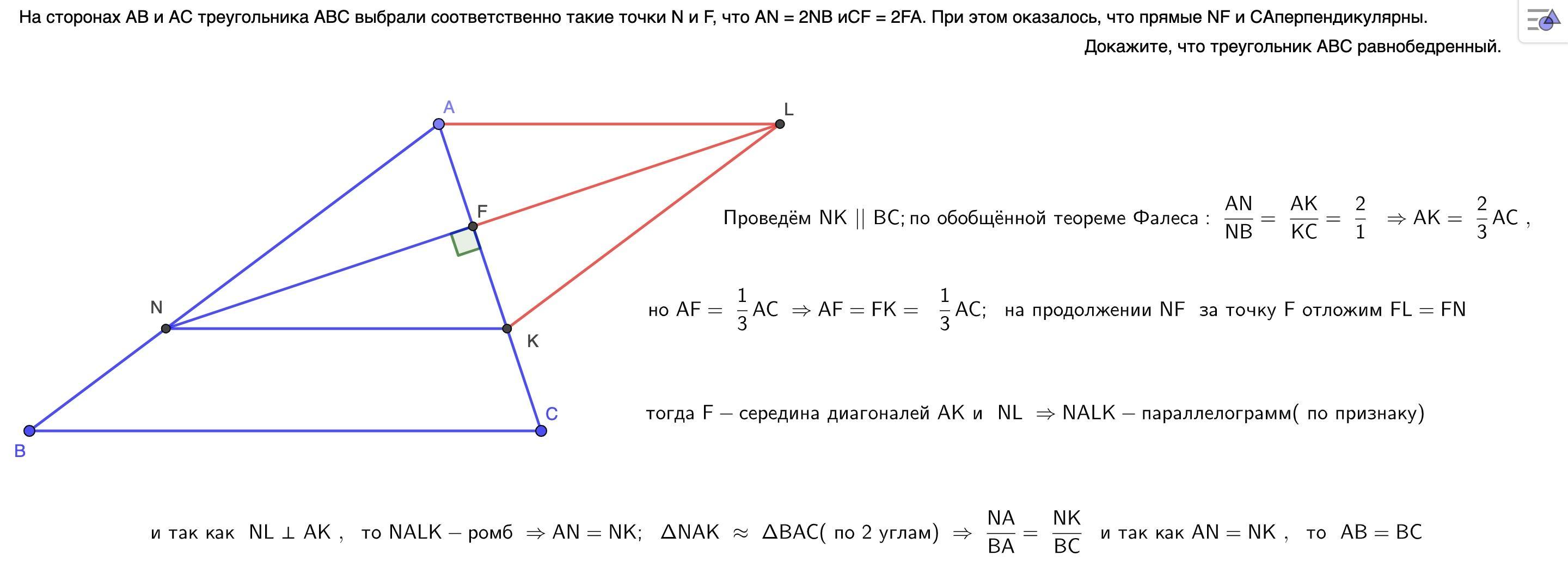 CF = 2FA. При этом оказалось, что прямые NF и СА